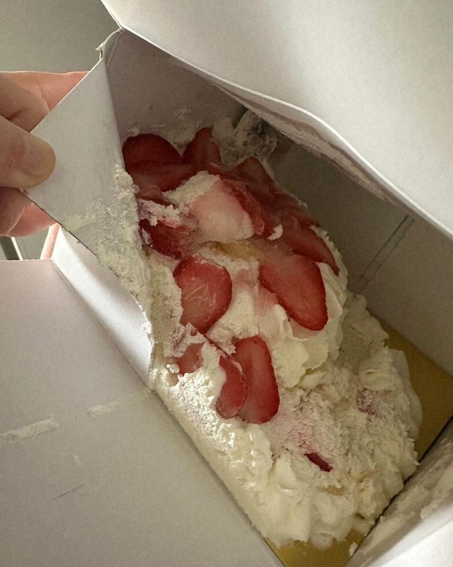 普通、こういうのを配送するなら、ケーキ全体を覆うようなプラスチックの蓋被せて、その蓋を下で動かないように固定させるだろうに。