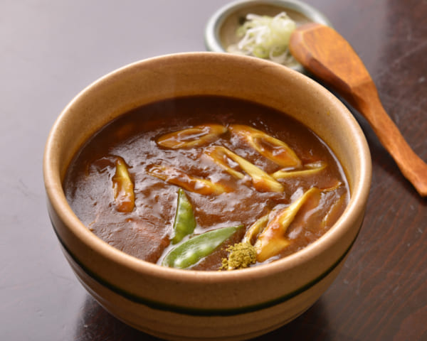 蕎麦出汁ベースにしてあまり煮込まないで作る玉ねぎの形残ったカレーは蕎麦屋ならではやな