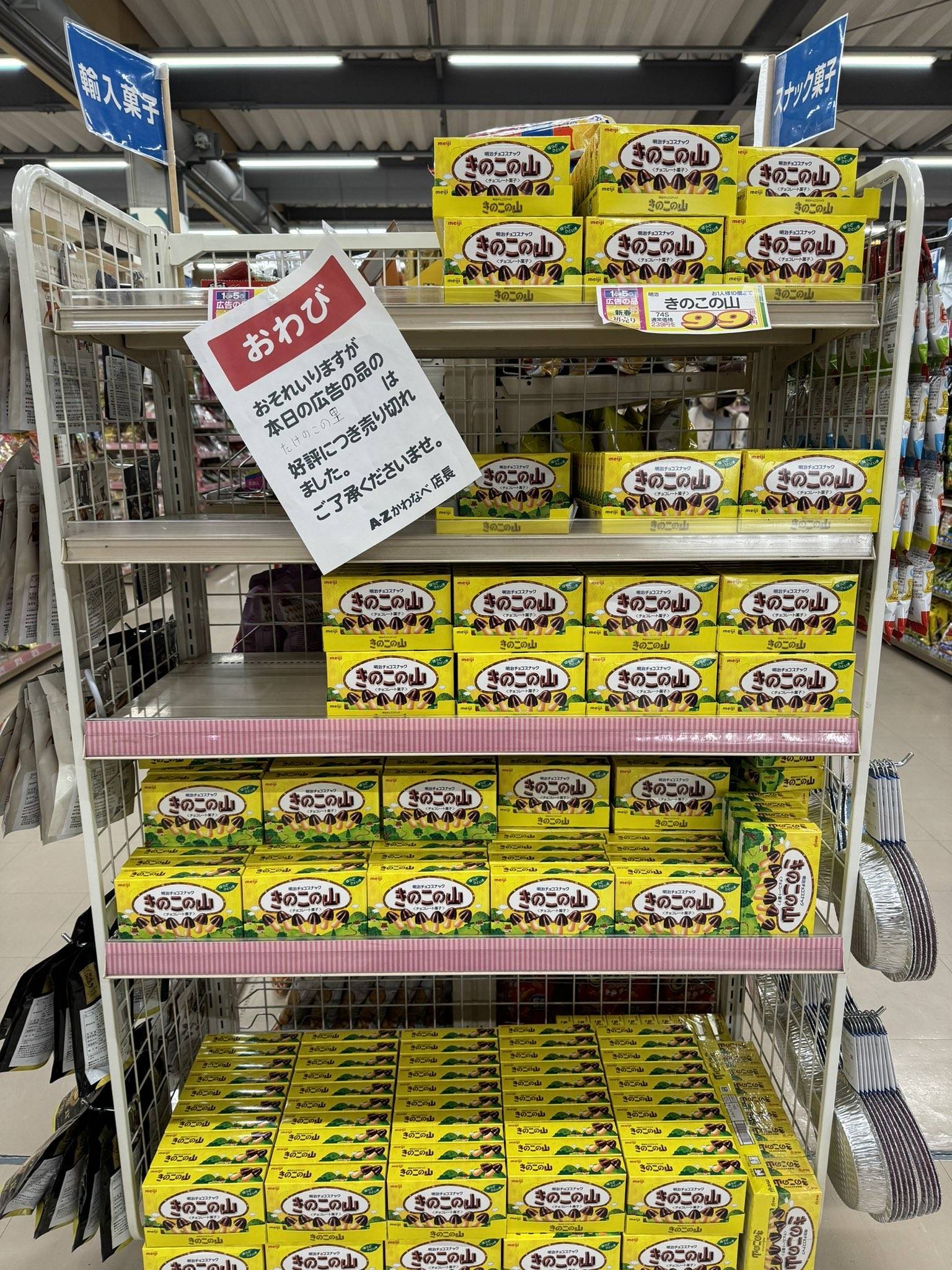 たけのこの里が売り切れてきのこが大量に売れ残ってるということか?