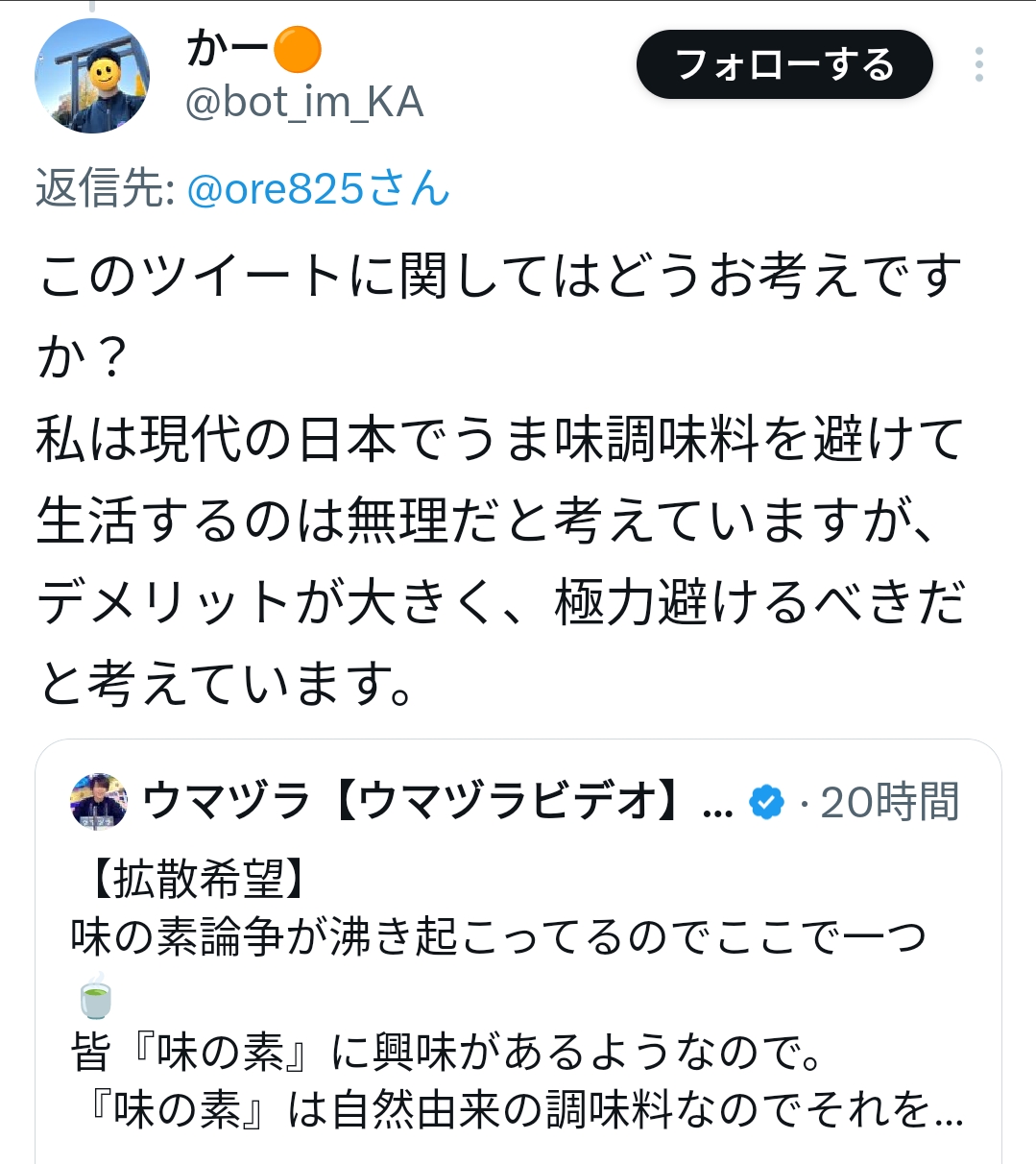 リュウジとかいう奴は庇いたくないけど未だに化学調味料とか言ってバカ晒してる奴居るんだね