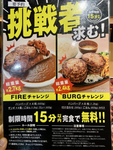 これチャレンジや無くハンバーグ半分でご飯人並の量で3000円なら普通に優良メニューになるんちゃうの?