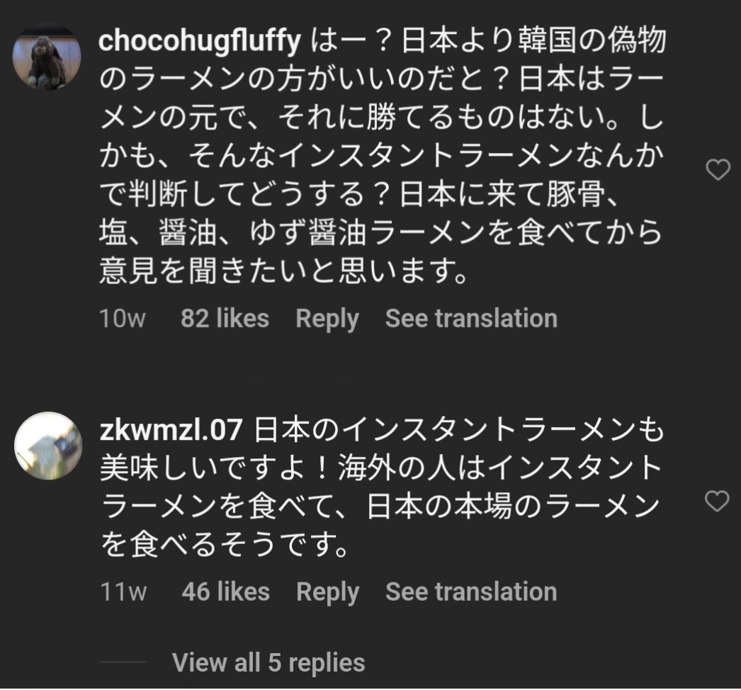 外国人さん「韓国のラーメン美味い!」日本人さん「はぁ?」