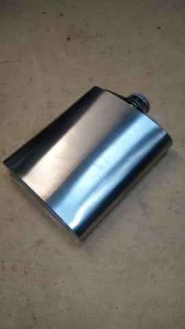 少々お高いけどピューターやイングリッシュピューター(錫とアンチモンの合金)のスキットルをお勧めする。