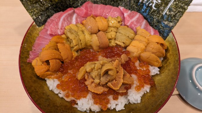 本物の写真はリンク先のヤフーニュースの記事にあるマグロ数切れとネギトロと玉子焼きがのってるしょぼい海鮮丼の方だよ
