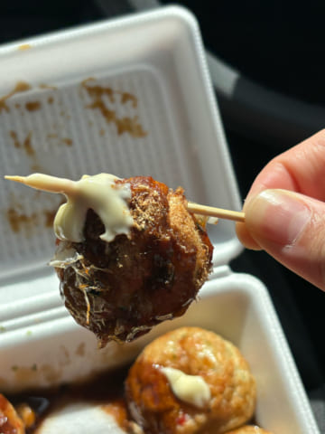 焼き加減よし。これやったら、たこやきリピートするわ。味がクドイ銀だことか無理