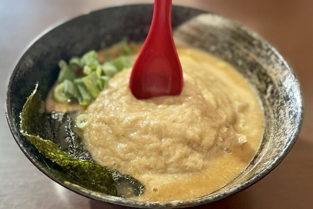 鶏ガラと野菜のスープでこってりにしてるんや