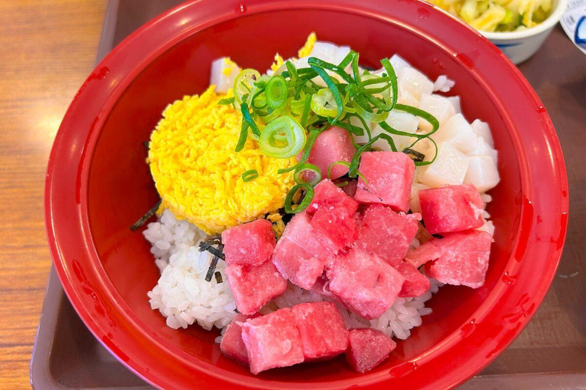 マグロ、イカ、卵の3色丼にした方がイメージ良かったのに