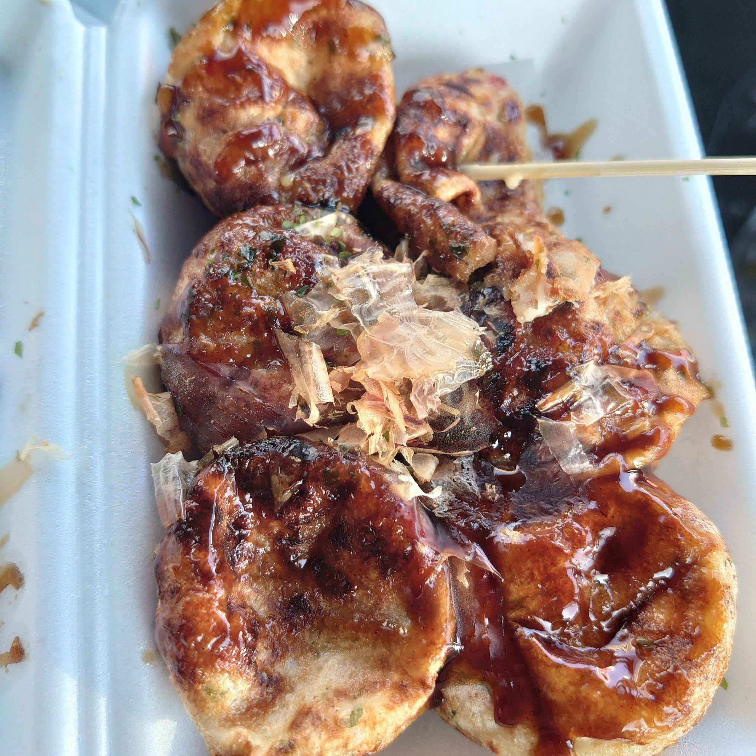 行ったら毎度5,6人並んでるから中々買えんのよな。私はソースも青のりも何も掛けずに素で買ってそのまんま手掴みで食べてる。スナック菓子感覚。