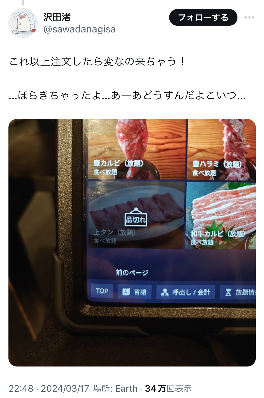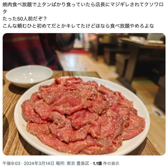 上タン30~40人前も一人で馬鹿みたいに食べるから品切れになるし他のお客さんにも提供できないんだよ