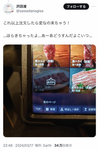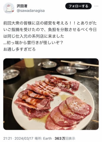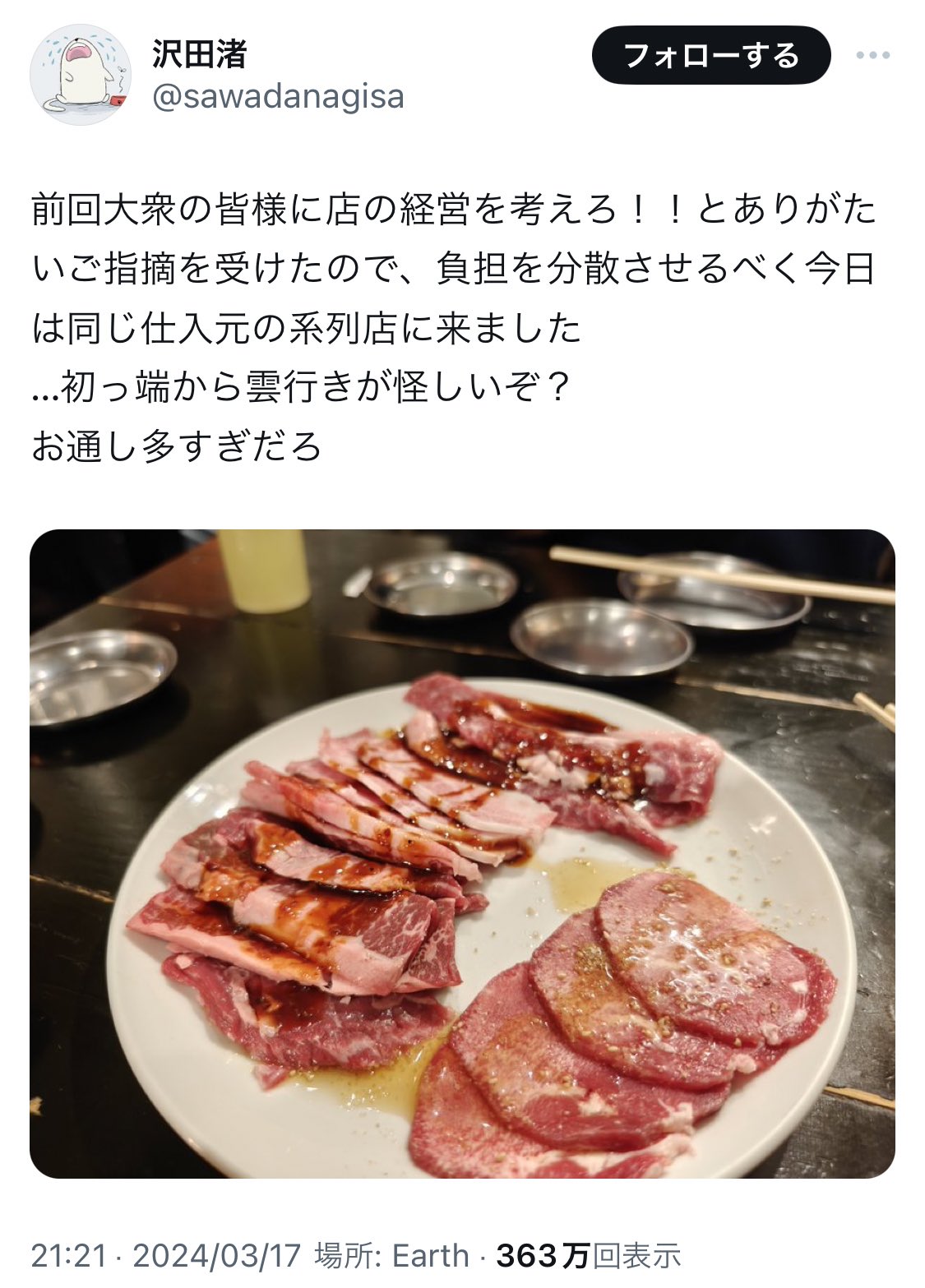 沢田渚@sawadanagisaのツイート「今回初来店の店」の通りであれば