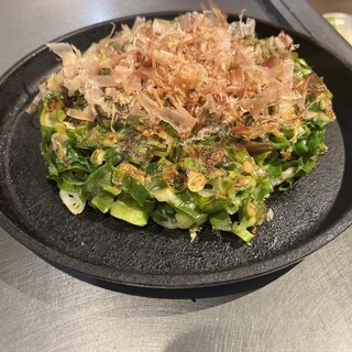 お好み焼きっぽいものの中にねぎがもりもりでビールのつまみに最強