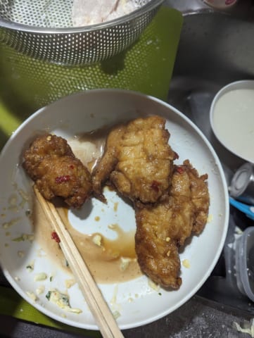揚げ物は如何にして衣の厚い壁を突破するかが肝である。笑🐸