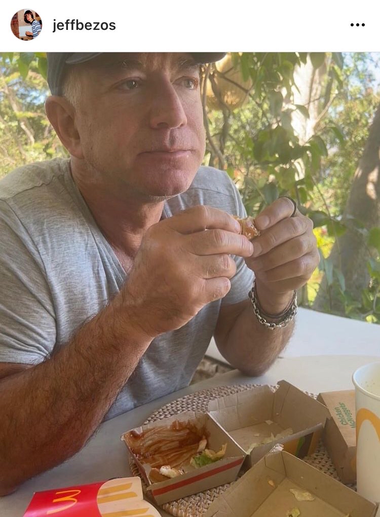 【画像】世界一のお金持ち・ジェフベゾスの昼食wwww