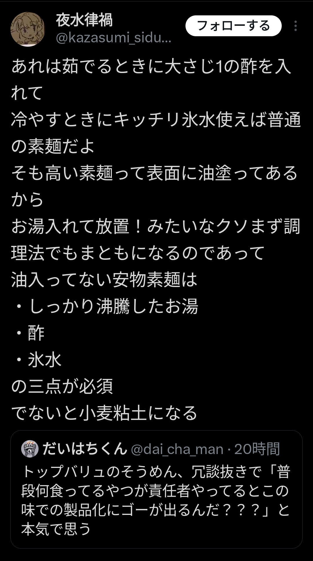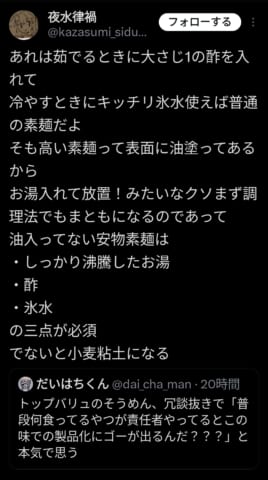 どっかのPBのくそまずい素麺が残ってて捨てようか迷ってるけど※23のやつやってみようかな