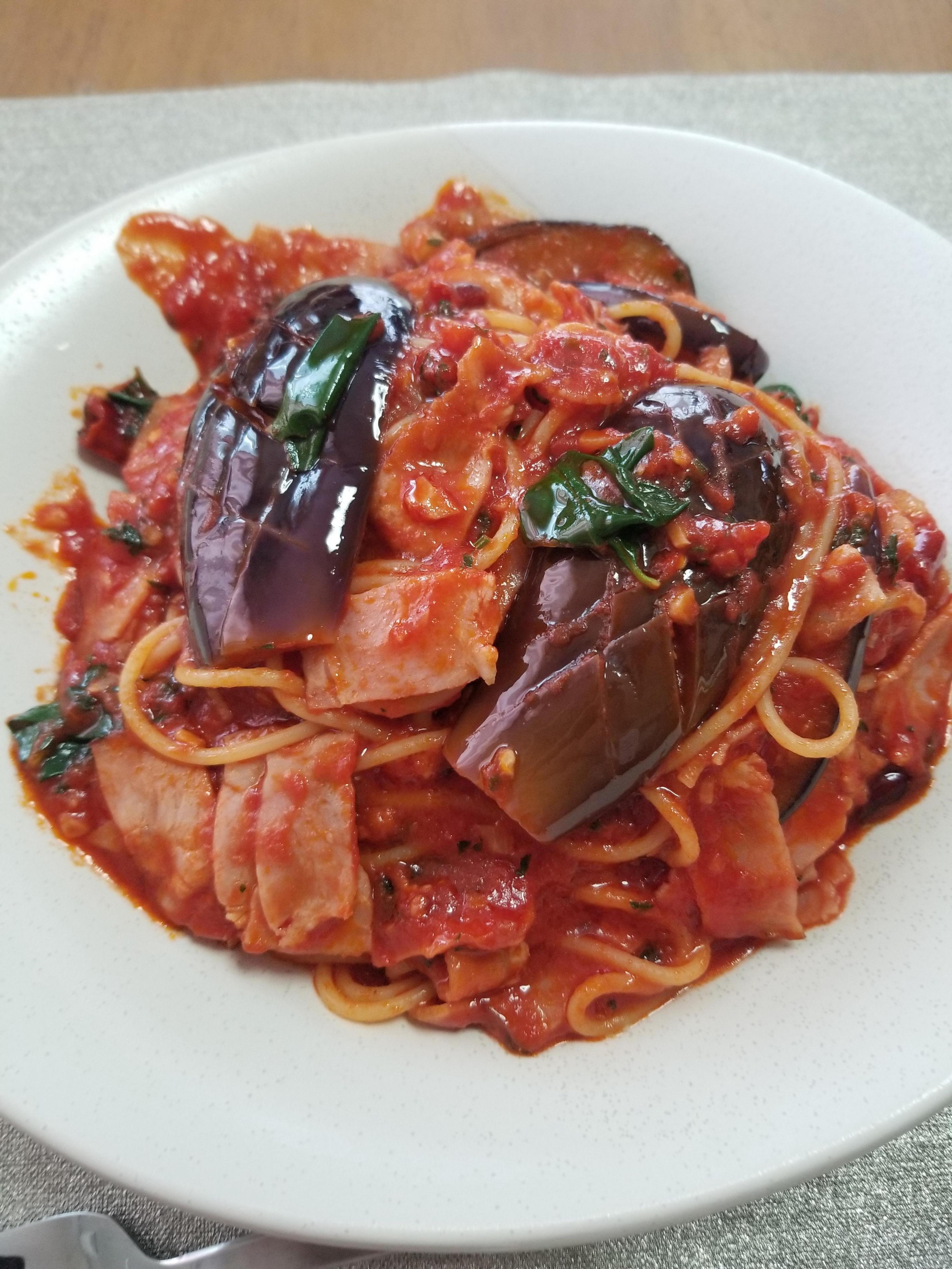 スパゲッティと一体感のなさそうな茄子