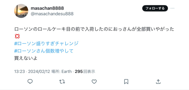 たまたま近くのローソンの入荷品出し時間と利用時間が被ってるんだけど、初日から毎日ババアが待ち伏せ&買い占めしてた