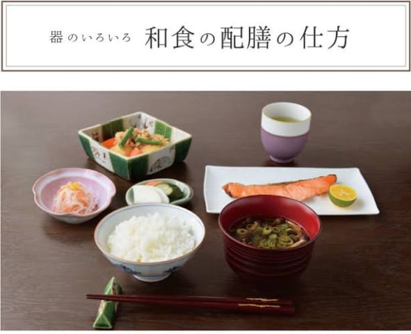 ご飯、汁、主菜を一つの膳にまとめるにあたり左手前にご飯さえあれば他は自由なんやが、持ち上げる器が手前の方が食べやすい、左右対称に近いの配置の方が美しくみえる、主菜が手前の方が食べやすい、主菜の器の形状などの理由で変わってくるんや