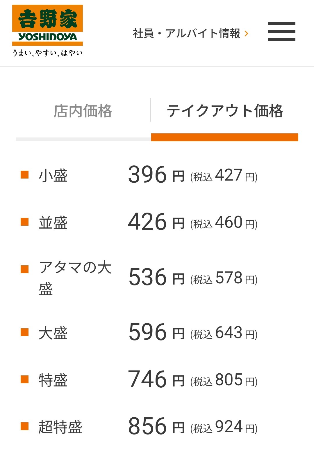 並盛松屋より60円も高い
