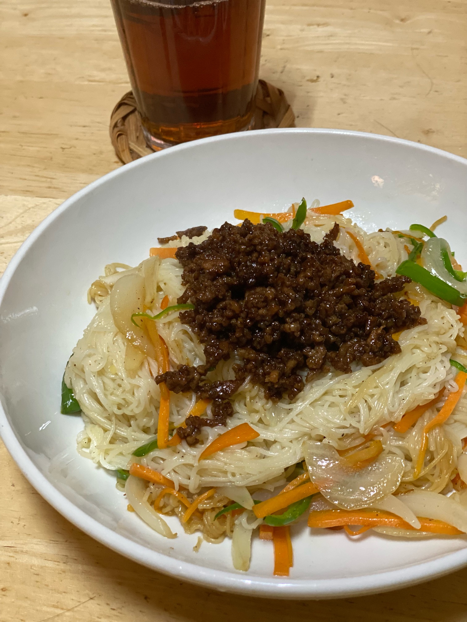 オリーブオイルのせいか小豆島そうめんが炒めて1番美味しかった。