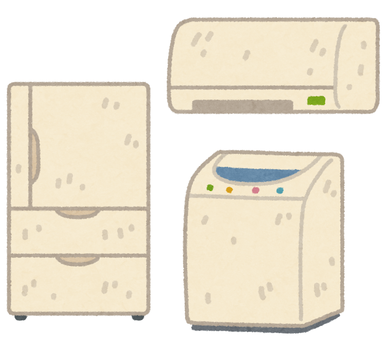 冷蔵庫、洗濯機、電子レンジ、エアコン、テレビ。笑🐸一切無しで2年過ごしたよ。笑🐸