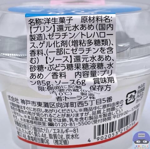 寒天/糊料(増粘多糖類)、香料、酸味料、(一部に卵・乳成分を含む)