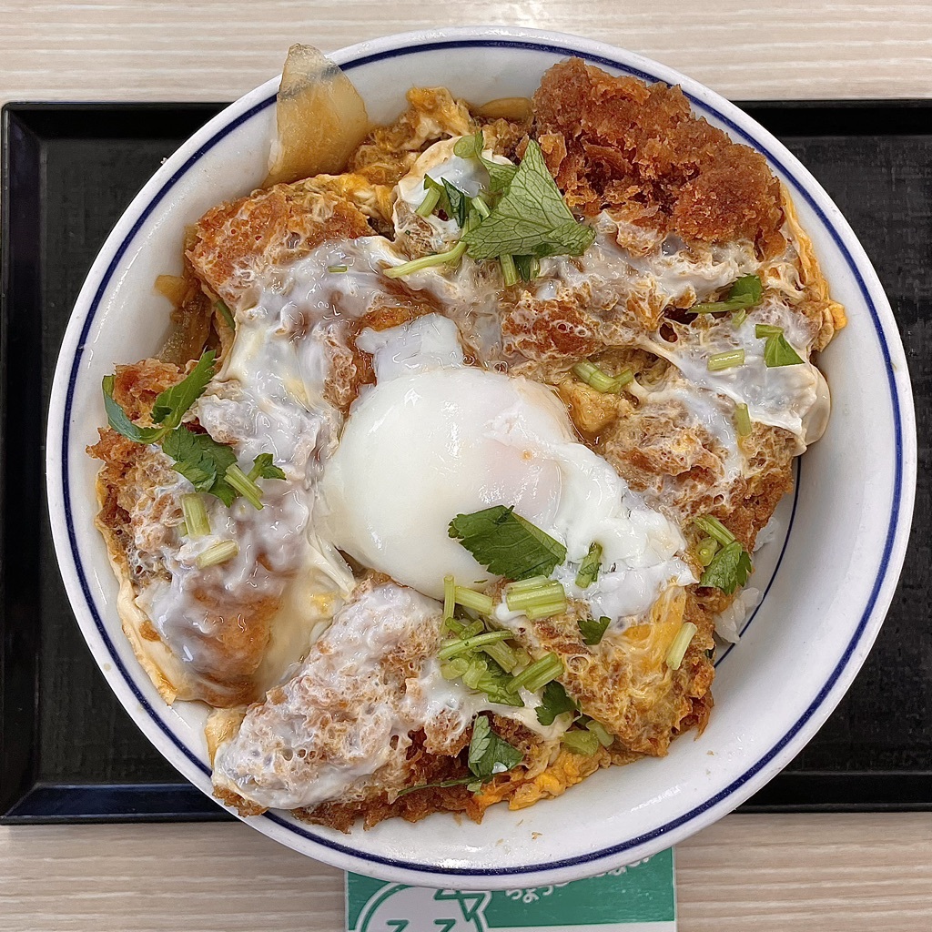 カツ丼にさらに温玉ぶっかける攻めの姿勢