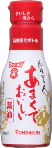 馬刺しやくじら用に常備してたけど、切らしてフンドーキンの「あまくておいしい醤油」買ったらちょっと違った。