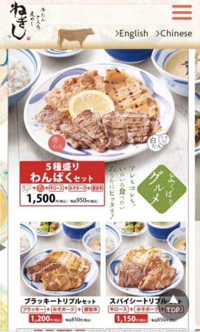 ねぎしは牛タン数種類あるから単純に比較できんけど、基本の「ねぎし(薄切り白タン)」が1枚300円だから牛タン4枚だけで1200円になるな。