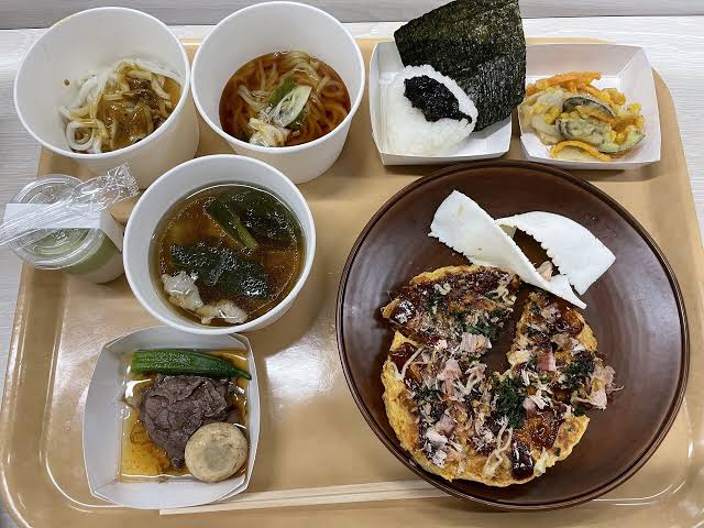 お好み焼きや素麺、かき揚げ、けんちん汁、おにぎりなどがありました。