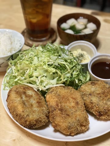 肉の分量が多いからコロッケというよりメンチカツに近い感じがある