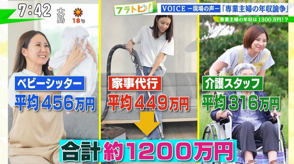 しっかりやってる専業主婦を月収評価すると手取り36万って分析もあったねえ