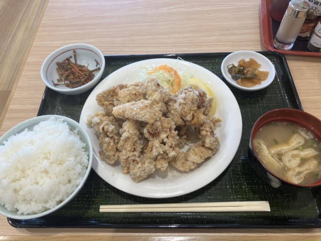 サクサク感は望むべくもないが醤油とニンニクが効いていて飯のおかずにはなるタイプの唐揚げやな