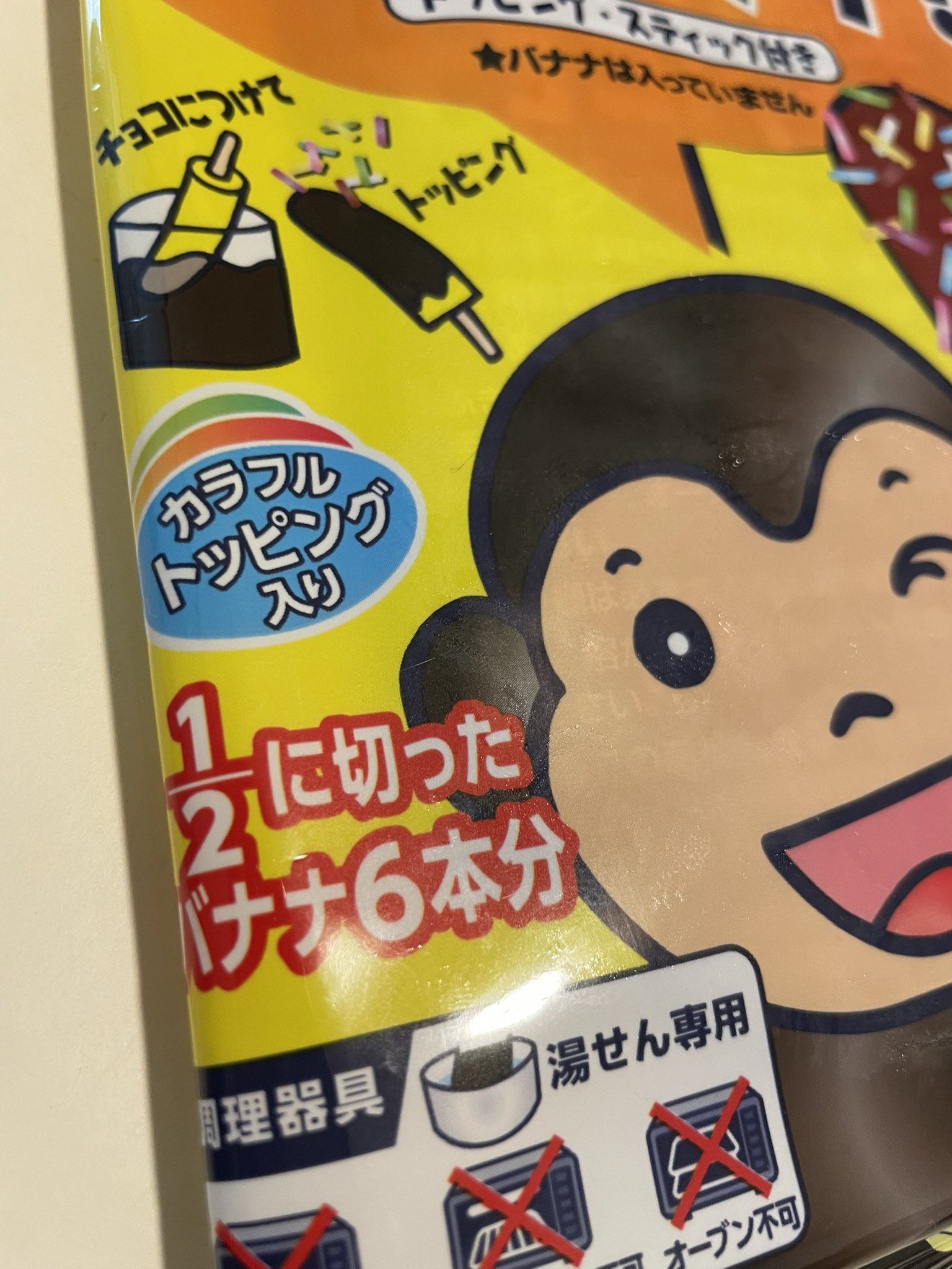 文字数を減らして、知りたい情報に整理すると「チョコバナナ1/2カット6本分」(完成品6本分の製品です)または