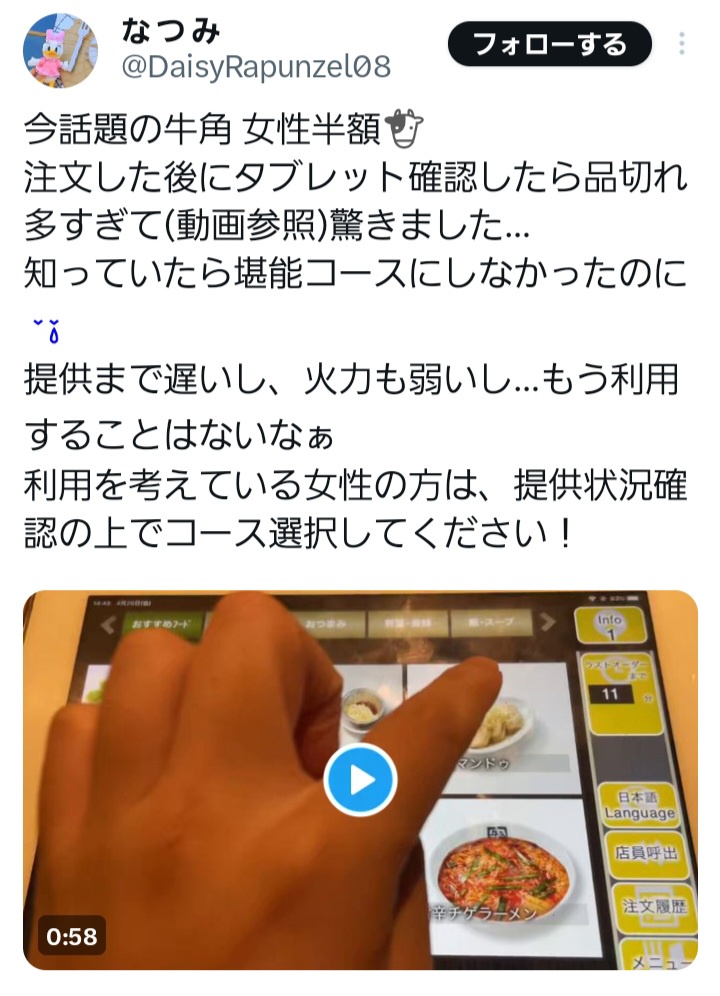 文句言ってる弱男なんてどの道普段から牛角なんて行かないだろうしな