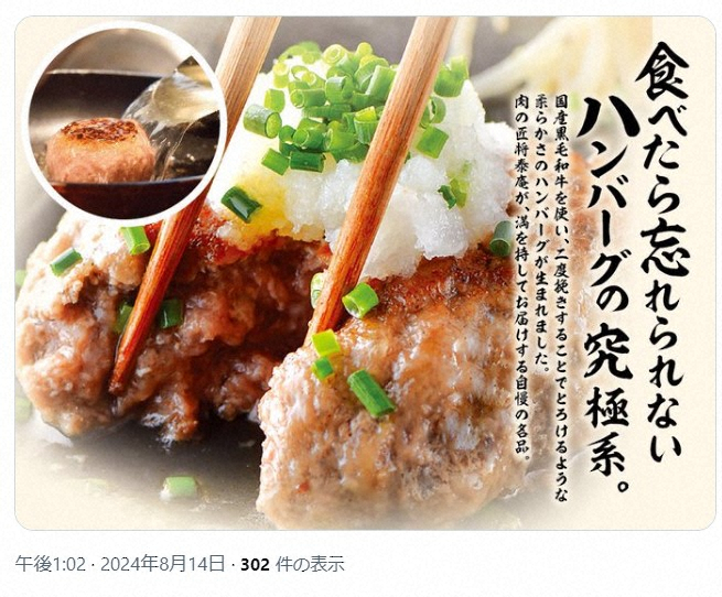 確かに「食べたら忘れられない究極系のハンバーグ」なのは分かる。