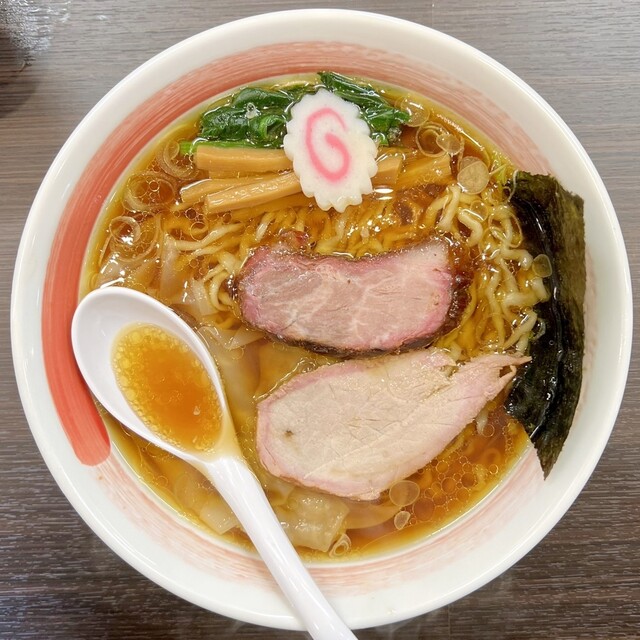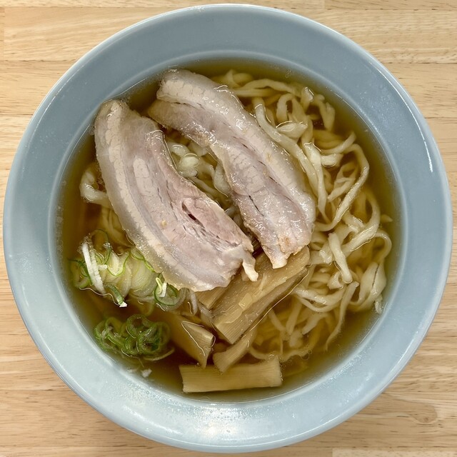 クセの無いと言われる佐野の水を使ったあっさり目のスープをちぢれ麵で絡めとって、コシが強い麺の噛み応えも楽しむ。