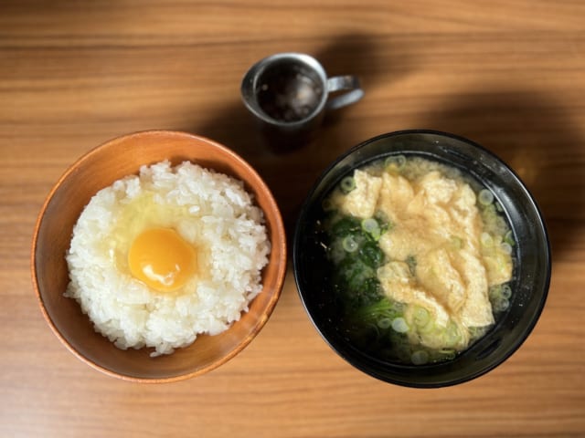 ちなみにご飯単品で200円、味噌汁単品で190円だから、卵かけご飯のほうがお得ではある。