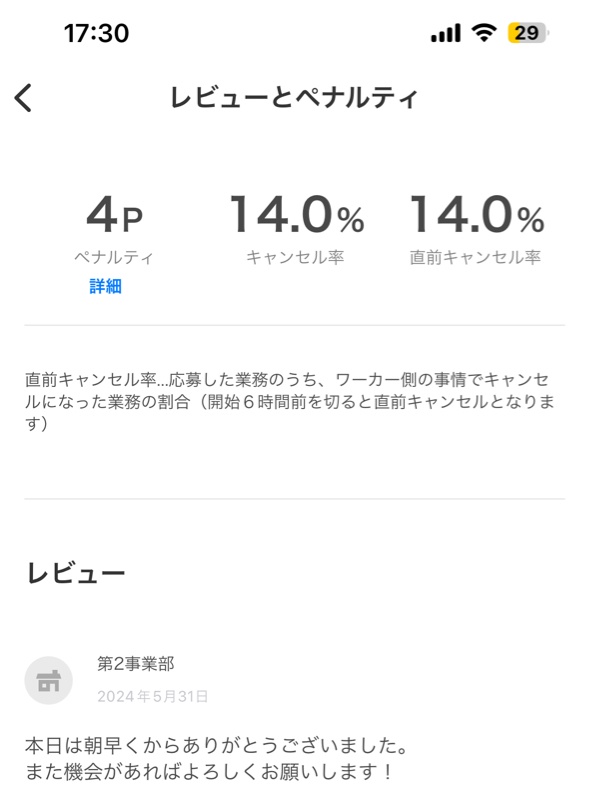 タイミーで来たやつが台風の影響で電車止まった時に遅刻のペナルティが怖くてタクシーで来てたわ