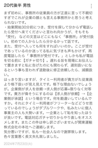 タイミー宛にしとるとこがアホやろ