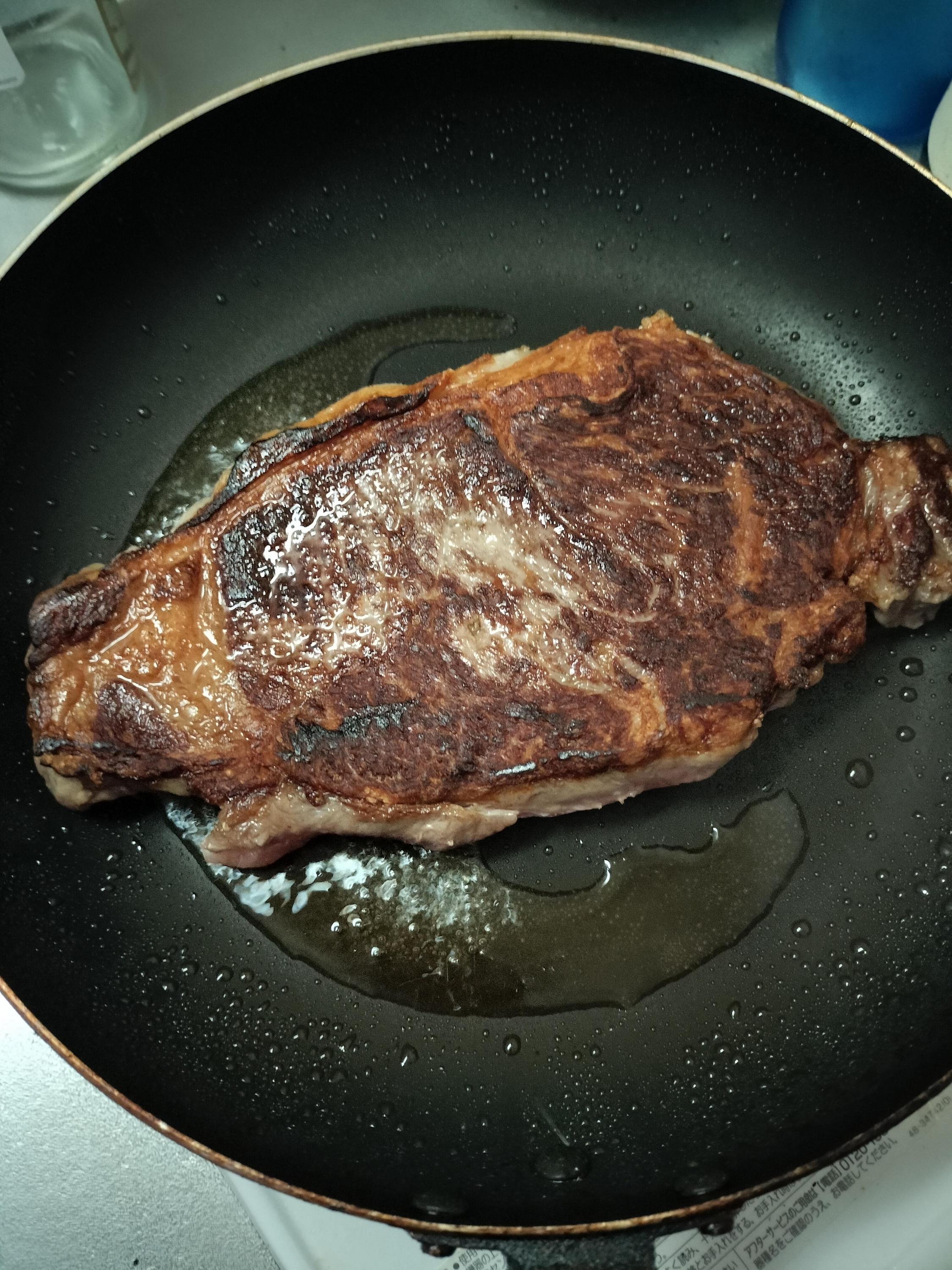 ちなみにこの画像の肉は常温から戻さず冷蔵から直に焼いてる