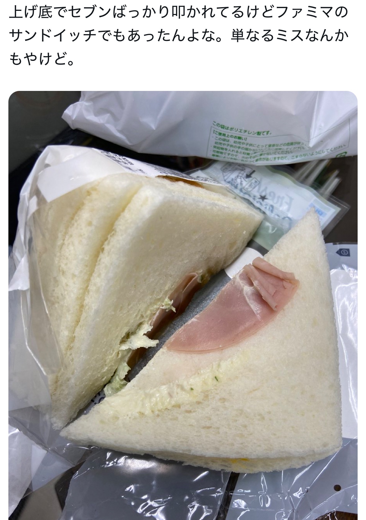 セブンとファミマのサンドをよく買うけど、そんな詐欺にあったことないけどな