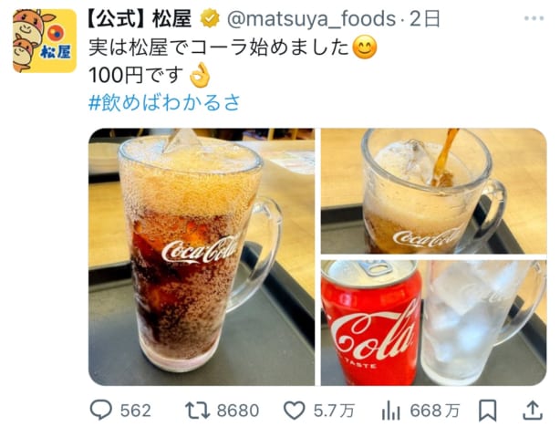 【朗報】松屋の100円コーラ、ガチで神すぎる