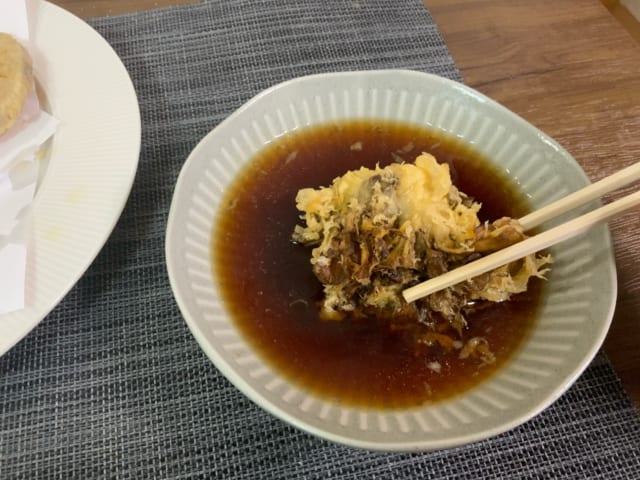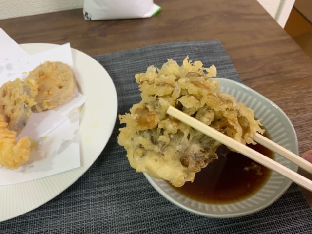 親指の爪がちょっと変やけど天ぷらは美味そうや