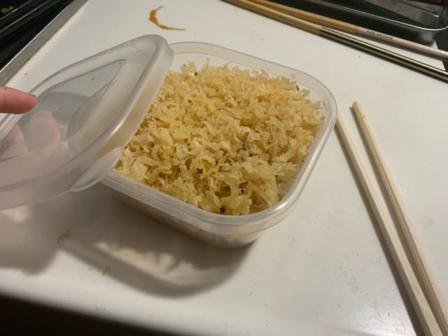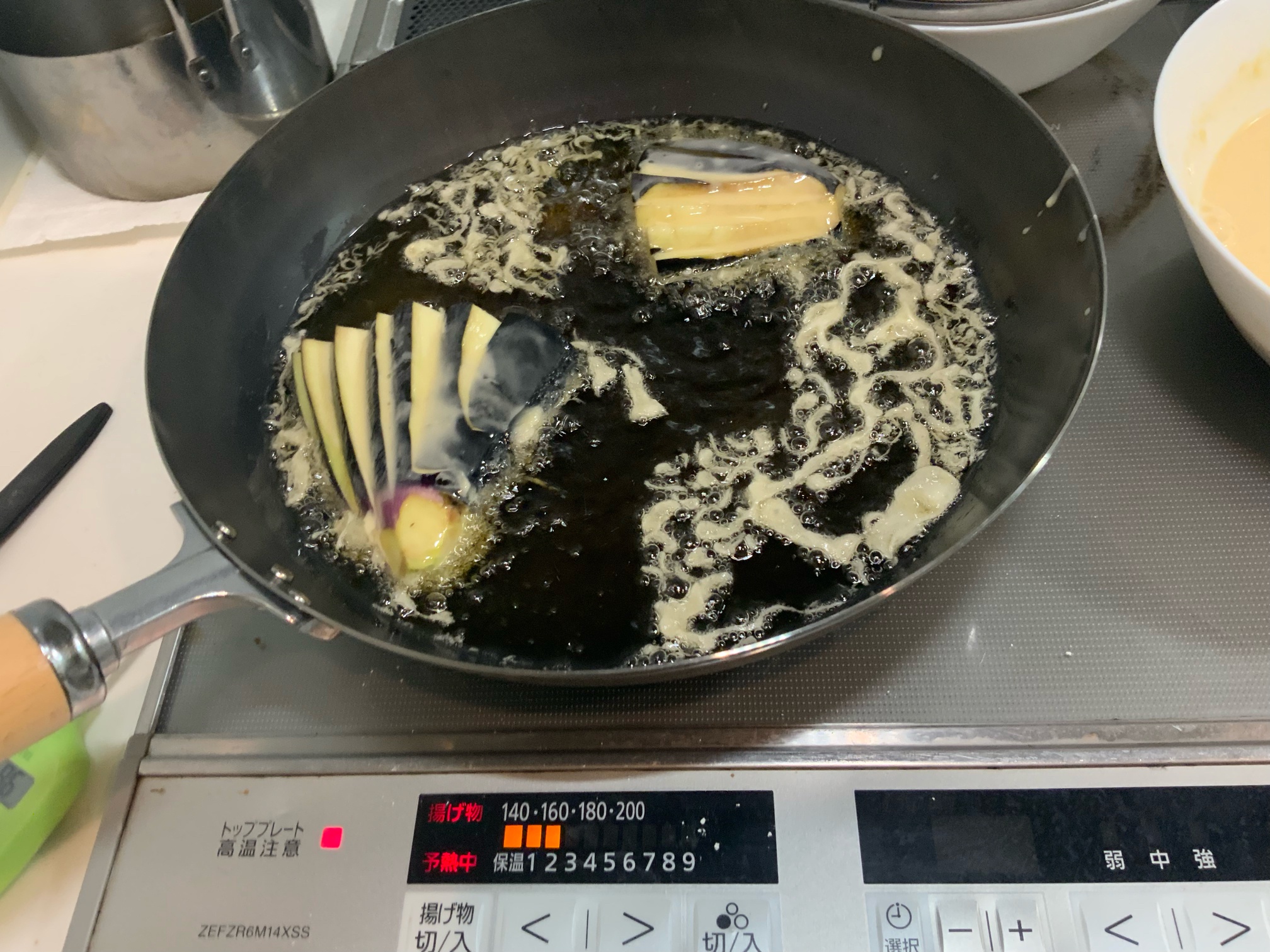 この揚げ方は簡単で羨ましいけど、周囲が飛び散った油でベトベトになるぞ