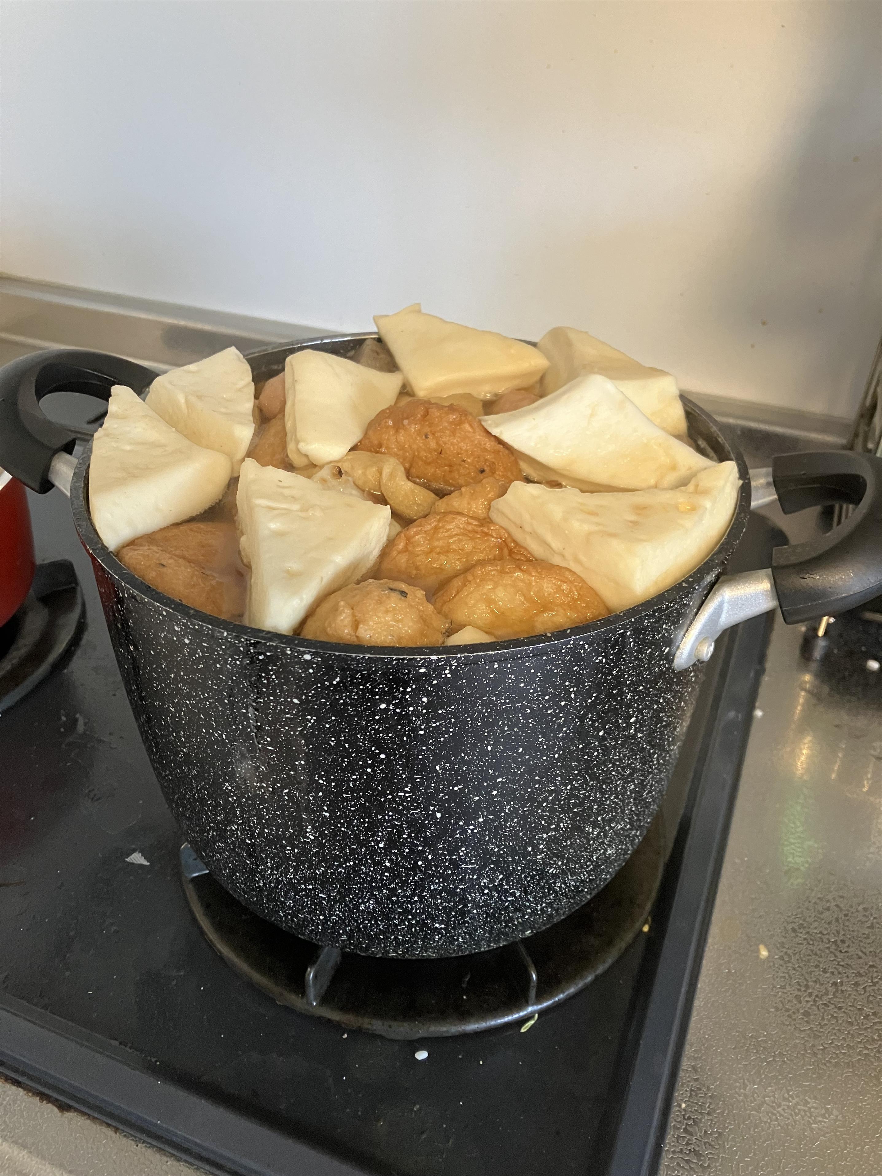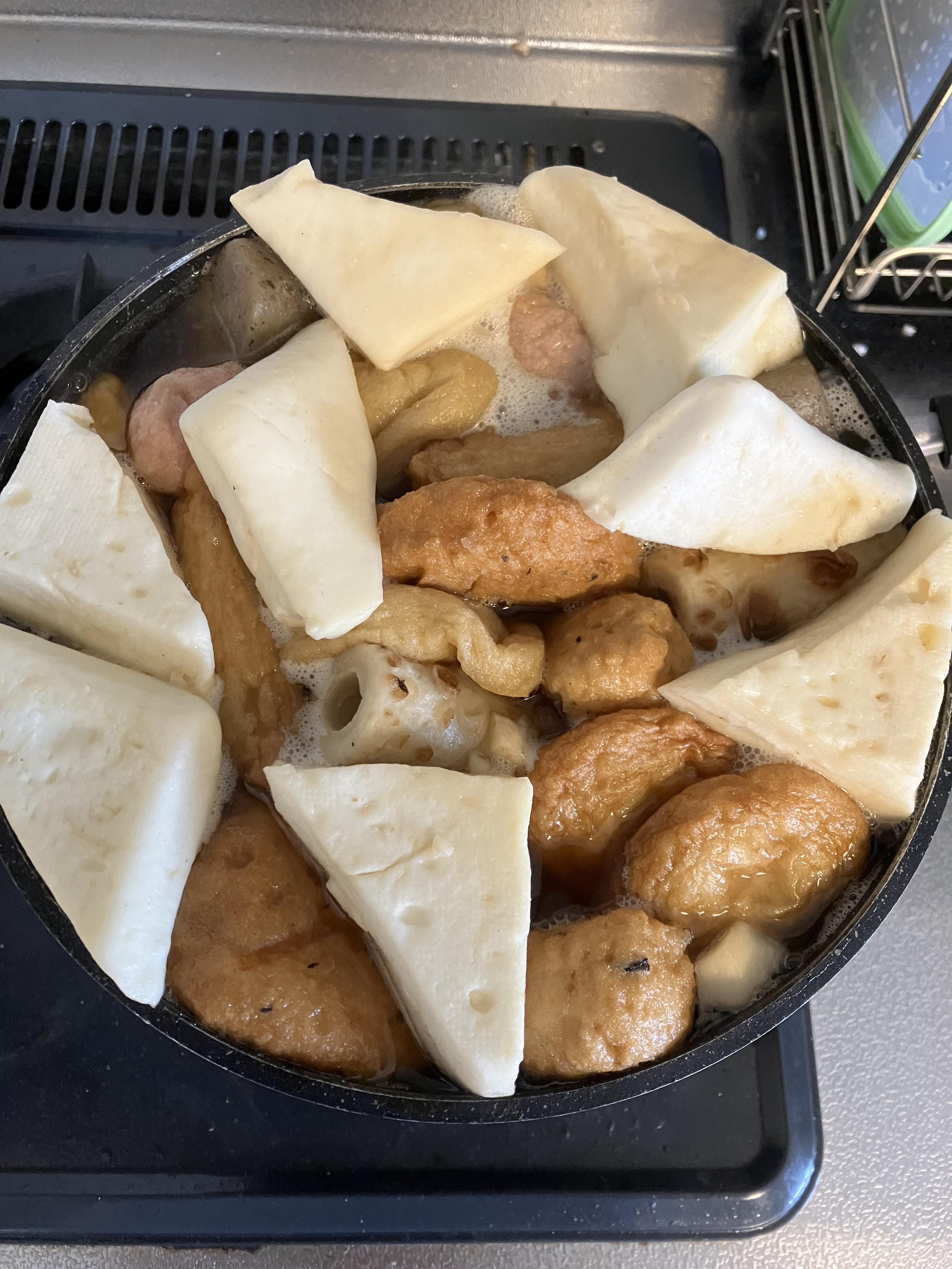 おでん作ると煮ると練り物とか膨張しちゃって予想以上に鍋パンパンになるよねえ