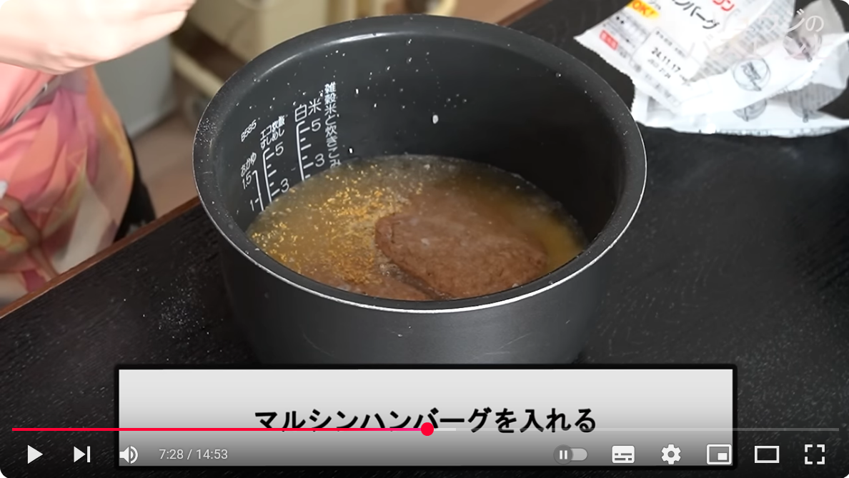 マルシンハンバーグを炊飯器にぶちこんで料理研究家ねw