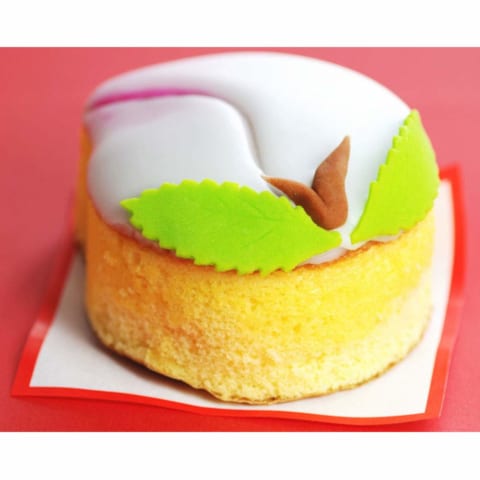 カステラの上に桃の形の砂糖が乗っとるだけや