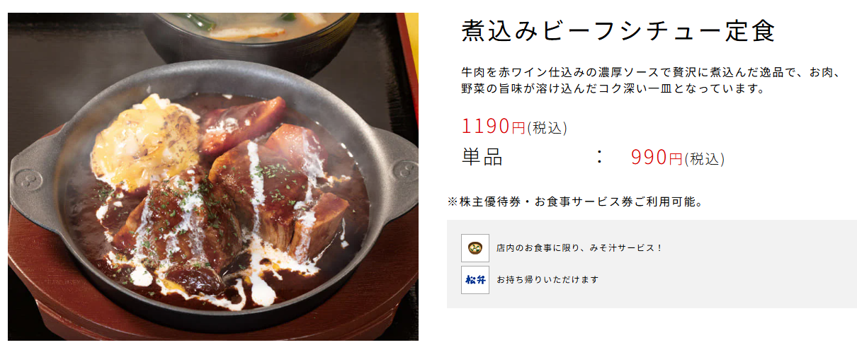1190円払って松屋で食うくらいなら、街洋食でビーフシチュー食うほうがいいわ。