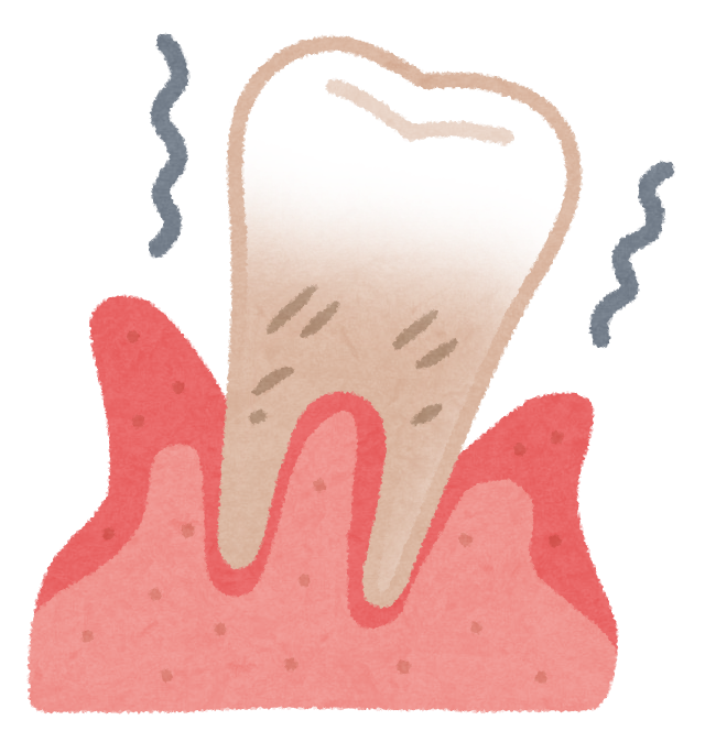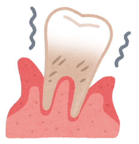 多くの場合、溜まりに溜まった歯石とそこに溜まった硫黄成分及び硫黄成分から発生する硫化水素等や菌の活動からの歯・歯槽骨破壊やプロテアーゼ生成によっての組織破壊などが原因であるでしょう。