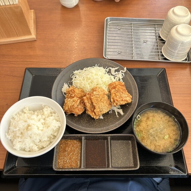唐揚げ、鶏南蛮、油淋鶏、とかは定食化されるくらいに相性悪くないでしょうと思われますが。